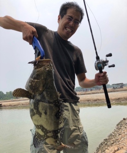 すると、車に乗ってきたマレー人が登場。今日は釣りはしないけど暇だから様子を見に来たんだよねって感じなので、2人で釣りの話をしていたら、魚がヒット。グルーパーが釣れました。