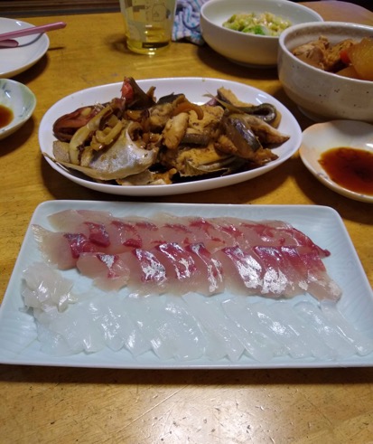 ショゴともらったアオリの刺身。大葉でも敷くと見栄えがよいのですが・・・
