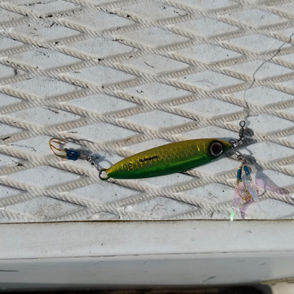 コハゲダシまわりで、適当にボートを流し、フォールを意識してジグをしゃくったところ、それっぽいアタリが2回。