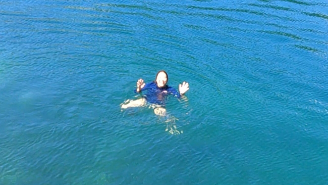 泳ぐ気まんまんの人がいるので岸近くへ。