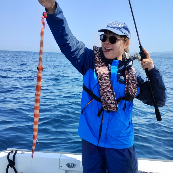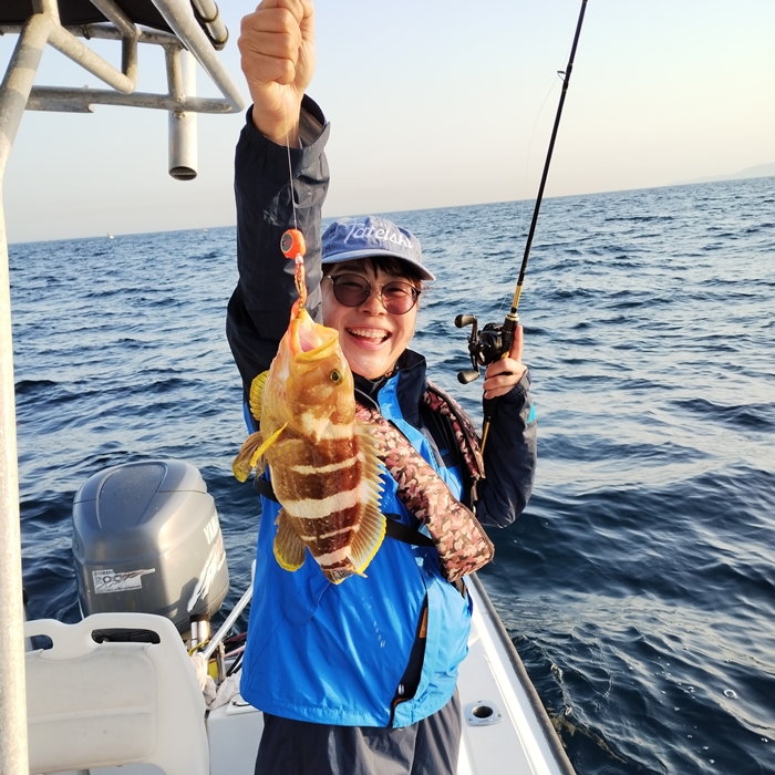 そのポイントは、何度かやったことあるのですが、これまで良い思いをしたことがないので、様子見と思っていましたが、釣り始めからS女史のアオハタ、H口さんが本命マダイと早くに目標達成!