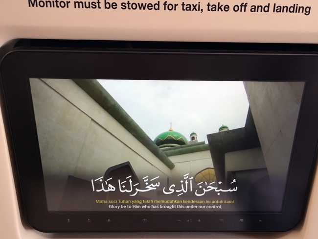 飛行機の位置情報にはメッカの方向が表示されていました。