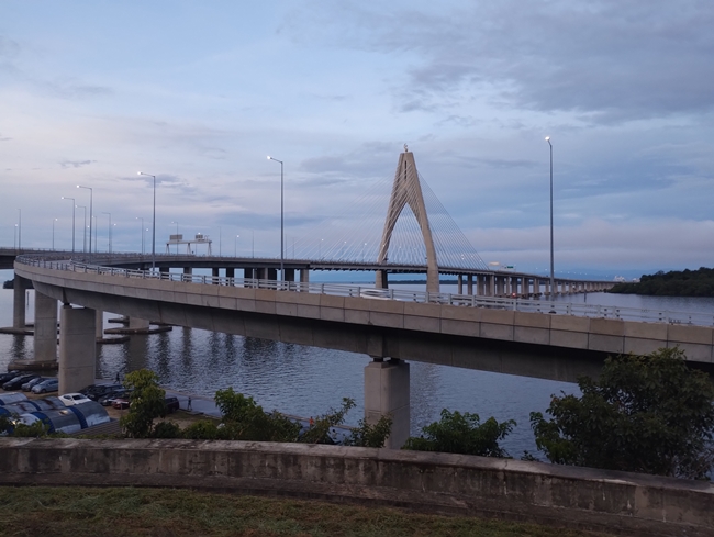 タクシーの運転手が「GTに行くか?ASEAN何とか」としきりに聞いてくるので、GTが何かを聞いてみてもお互いの英語が片言なのでよくわからない。よーし、じゃぁレッツゴーで着いたら大きな橋でした。ネットで調べたらASEAN最長の橋のようです。橋の下には釣り人が数人いました。