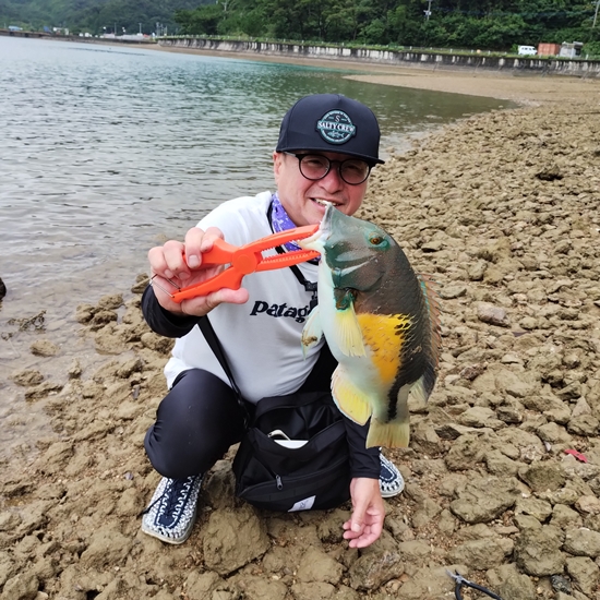 Tさんがマクブらしき魚をキャッチ。