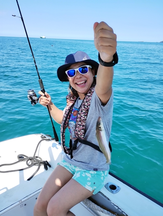 後半はシロギス釣り。僕は挑戦でアジング用の小さなワームで試してみますが、カミツキハゼみたいなのが釣れただけで、シロギスは釣れませんでした。ガルプやマルキューとかの匂い付ワームじゃないと釣れないってことですかね。