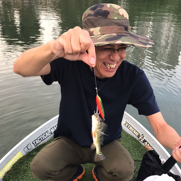 これは、ガイドがミニワームで掛けた魚を、H口さんへバトンタッチして釣らせてくれたもの。