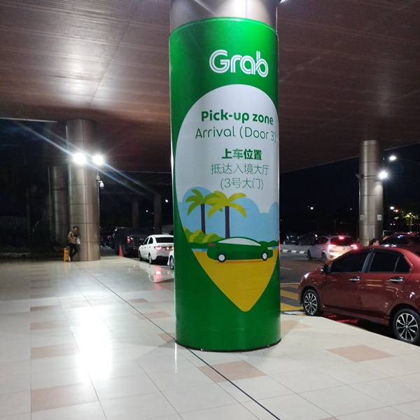 クチン空港は出て右に行くとタクシー乗り場ですが、反対側の左の方にGrab乗り場がありました。タクシーより安いし、駐車場で何台か待機しているようで、すぐに来るのでGrab一択です。
