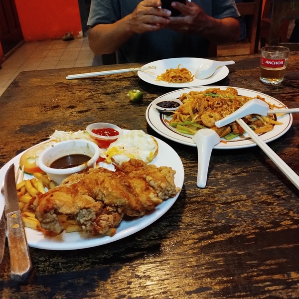 昼食へガイドを誘ったところ、現地のレストランへ案内してくれました。なかなか美味。真ん中に写っている魚はマッカレルで、日本のサバとは顔つきが違いましたが、サバの味噌煮的な感じのものでした。