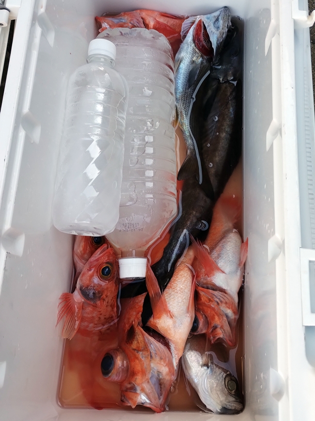 2人で釣れたものは、ユメカサゴ、クロムツ、シロムツ、カタボシアカメバル、クロシビカマス、ヒメ、サメ。
