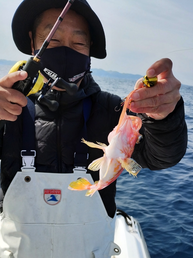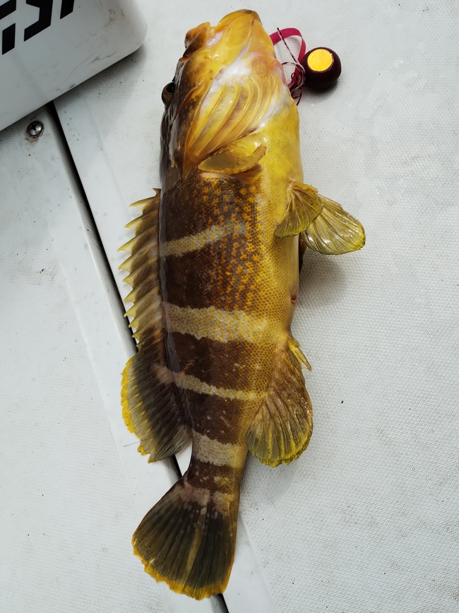 大きくポイントを変えて洲崎沖へ。昨年マダイが釣れたポイントへ行ってみて、釣れるんじゃないかと思っていたアオハタが釣れました。