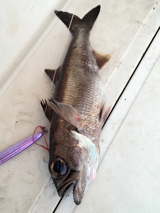 ボートを出して、1投目、2投目とムツがヒット。しかもサイズが良い。