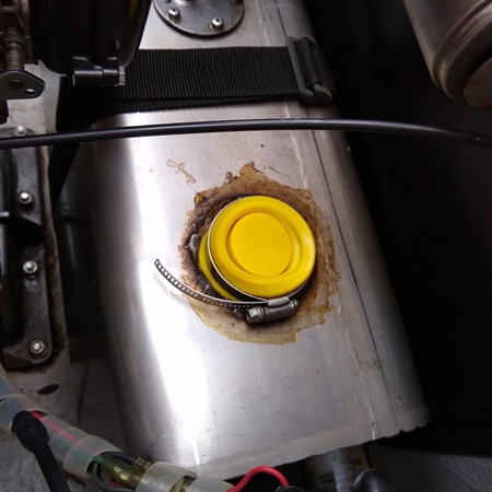 タンクの底にはタール状のものがこびりついていました。ガソリンが揮発してオイルの重たい成分のみ残ったのでしょう。