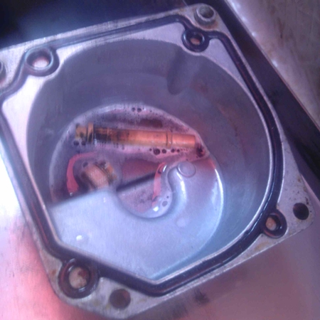燃料タンクを開けてみると、燃料センサーは完全に腐食。