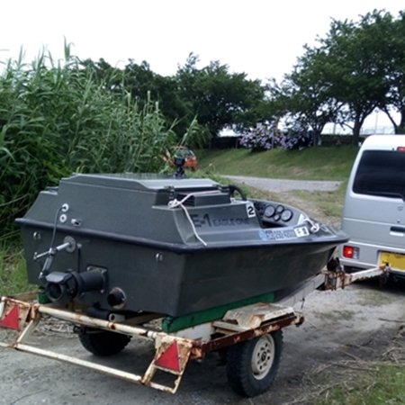消防車のポンプなどで有名な森田ポンプ(現モリタ)が、平成2年に小型ジェットポンプを搭載したボートを開発してマリーン事業へ進出しました。その頃はバブルのピークで、浮かれた世の中のムードに乗って間違ってしまったとしか思えない、バブルがあったからこそ産み出された珍品?迷品?だと思います。