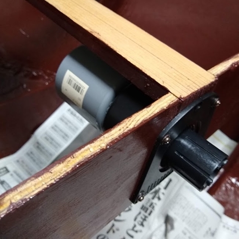 エンジンの首をふるために、舵の動力を伝える場所が必要ですが、悩んだ末に、前部にある穴を活用することにしました。