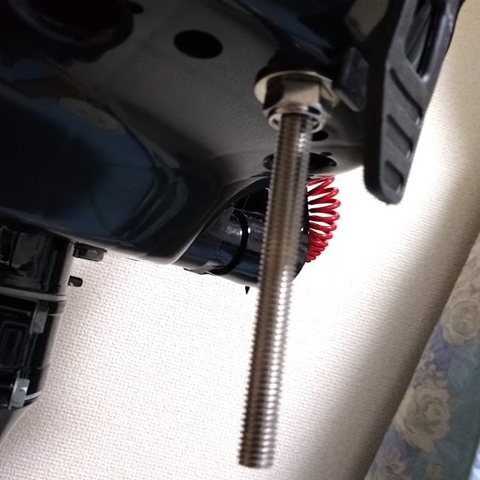 このボルトをワイヤーで引いて、エンジンの首を振らせます。