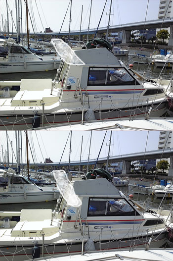 ![]() | 完成したのでボートに付けます。ボートの白色は黄ばんでいるので、レーダーアーチのクリアな白が浮いて見える(汗)調色すればよかった… |