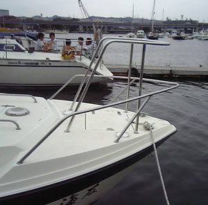 ルアー釣りをする時は、先っぽ(ミヨシ)に立ちたくなりますが、ボートのバウは揺れるので体をあずける事が出来るレールが欲しくなります。
