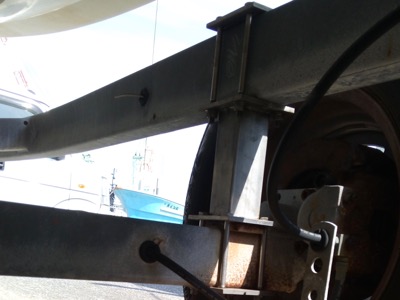 ある日、保管中のボートが傾いている気がすると思ったら、板バネが破損していました。
